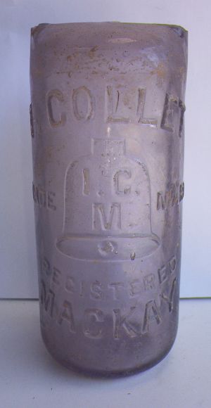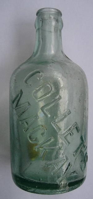 A Collet's Stone Ginger Beer bottle. | A Collet's Blob Top bottle with similar embossing to the above Marble bottle. |